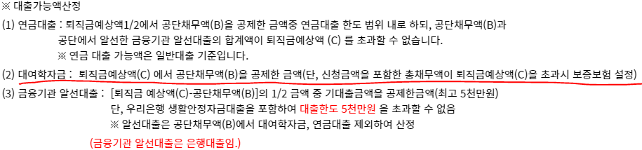 - 예상퇴직급여 범위 내 대부가능 ※ 예상퇴직급여 초과 시 보증보험 설정 필요