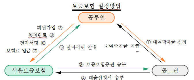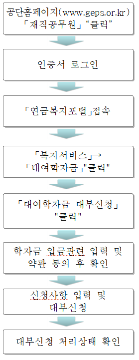 - 먼저 공단 홈페이지를 통해 대여 학자금 신청을 합니다. (공무원)